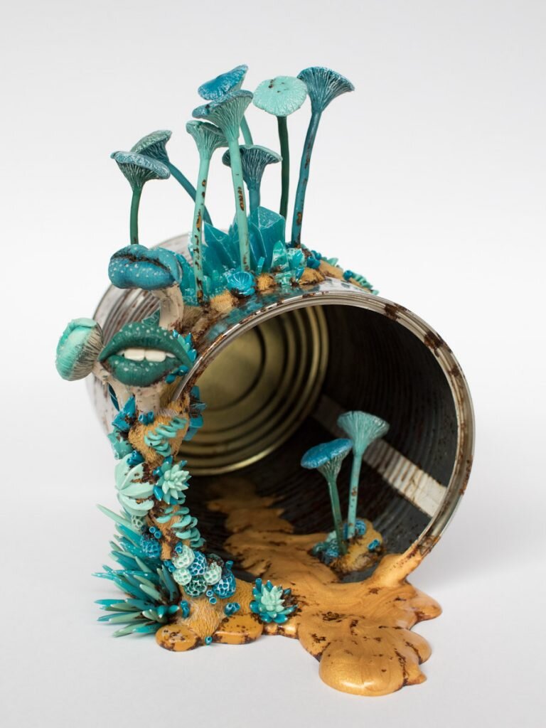 Казалось бы обычная жестяная банка, которая валяется всюду и везде и собственно не чем ни примечательный предмет, а уж тем более не вызовет восторга. Ну когда к этому невзрачному предмету присоединяется вдохновение и рука мастера, то творческий процесс уже не остановить. С помощью полимерной глины и красок создается удивительный и необычный мир. Полимерная глина вдохновленная руками мастера в буквальном смысле обволакивает материал. Даже розовый медведь из глины выглядит забавно и не нарушает общую композицию, а наоборот дополняет ее. Все это со стороны кажется сложным, но это до той поры, пока вы не попробуете сами создать нечто подобное, да в начале все будет не так гладко, как вам бы этого хотелось, ну тут главное не сломаться и не бросить все, а пойти дальше в освоении рукоделия из полимерной глины.
