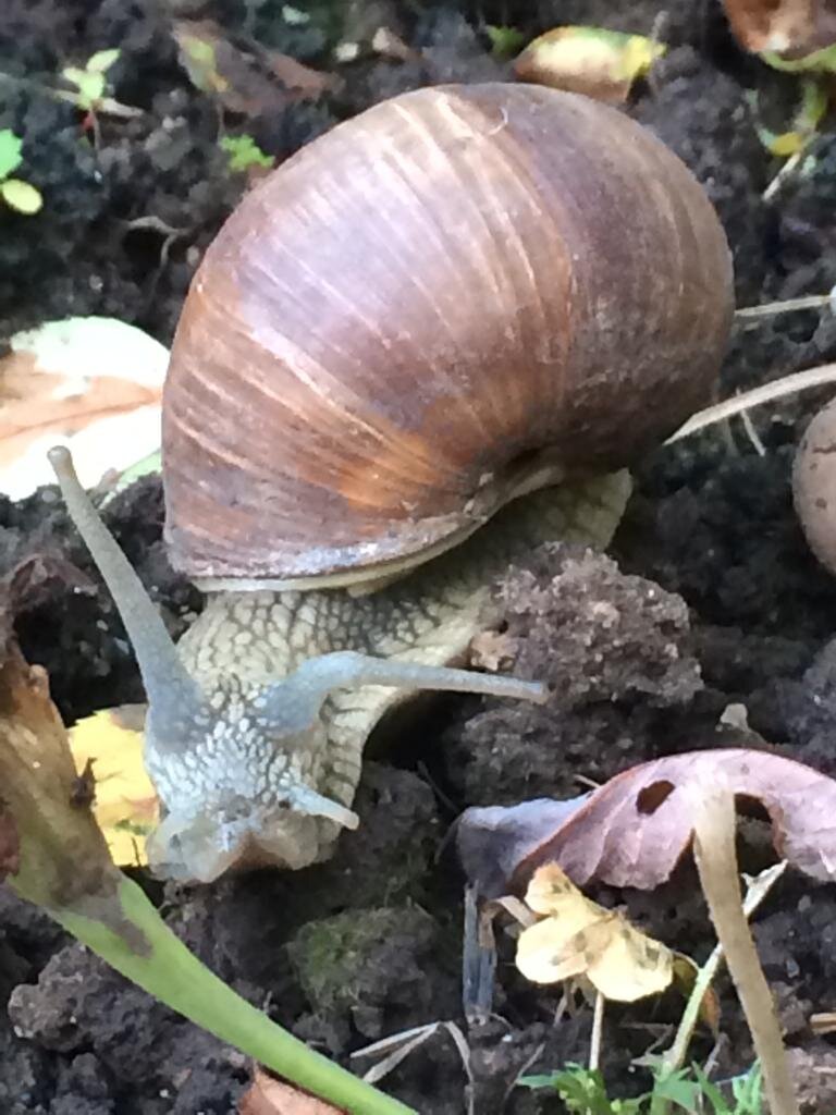 Здравствуйте! На этой неделе в краснодарском крае идут дожди с грозами. Не обошли они и мой южный городок, в котором я сейчас и прибываю. Вчера после сильного дождя на оконном стекле я заметила огромную улитку, которая зачем-то поднималась вверх по окну. Такую большую улитку я видела "живьем" только в зоомагазине в Москве. А тут ползет себе этот экземпляр... Пошла отлепила её от окна и решила поближе рассмотреть, посадив улитку в импровизированный аквариум из пластикового контейнера. Положила ей туду успевшие уже созреть в моем саду абрикосы и немного виноградных листьев. Улитка же виноградная! Об этом я уже успела ознакомится в Интернете. Дело было к вечеру, улитка сидела мирно в "аквариуме", а утром "сбежала", оставив за собой след, в прямом смысле - след из слизи. Ну и хорошо, так как я этого и ждала. Не знаю откуда появилась улитка, в нашем городке за 8 лет я вижу такую впервые. Вчера же, когда дождь закончился, вдоволь "насидевшись" в доме, решила я прогуляться. Выйдя на ул