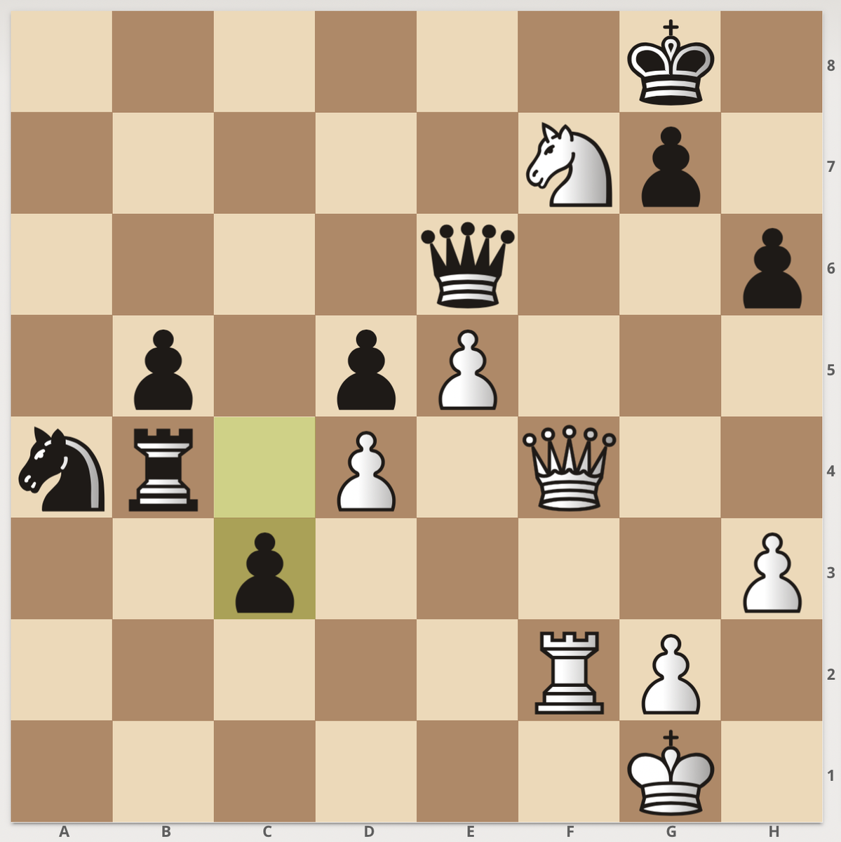 Ход белых. Решение ниже. . . . . . . . . . . . . . . . Берем пешку черных с поля h6 конем с шахом! Ферзь черных забирает коня белых, белые атакуют короля ферзем в паре с ладьей. Король черных отходит на поле h7. Белые забирают ладью черных на b4 Понравилась задача? Смогли ли вы ее решить? Делитесь в комментариях. Подписывайтесь на канал, будет много интересных задачек.