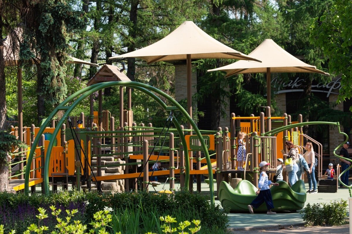 На ВДНХ и в парке «Останкино» оборудовано несколько детских площадок. Они равномерно распределены по территории для удобства посетителей. Все площадки соответствуют самым высоким стандартам безопасности и отличаются оригинальным, продуманным дизайном. Стоит отметить, что на Выставке заботятся и о маленьких гостях, которым в силу физических ограничений, тяжело играть на обычных площадках. Недалеко от Главного входа расположена площадка именно для этих детей. Здесь есть рампы, необходимые для инвалидных колясок. Большая часть игровых элементов площадки доступна для детей с ограниченными возможностями передвижения. Пройдя еще пять минут дальше, мы попадем на детскую площадку «Фантастический город». Название полностью соответствует тому, что там происходит. Самый большой восторг у посетителей вызывает сказочная башня высотой около 7 метров, с которой весело катиться вниз по трубе. А еще там есть: альпинистская стенка, небольшая «тарзанка», интерактивная панель «шестеренка», и конечно