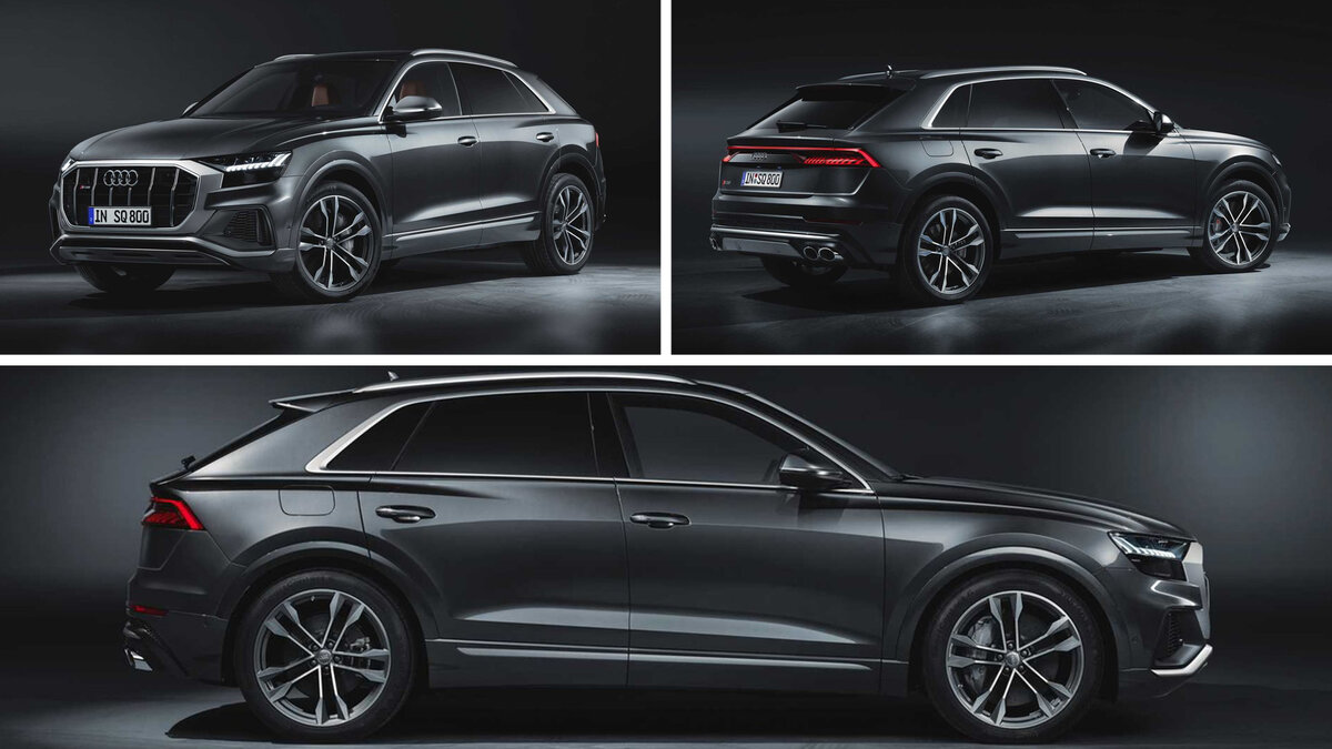 Флагманский кроссовер Q8 обзаведется «заряженной» версией — Audi SQ8. Глобальных внешних отличий от стандартного SUV практически нет, однако под кузовом находится значительней «продвинутая» начинка. Новинка Audi Q8 будет использовать 4,0-литровый дизельный движок V8, который включает в себя два турбокомпрессора и электронагреватель, как в модели SQ7. Новинка сможет достичь скорости в сотню всего лишь за 4,8 сек. Это все благодаря мощности в 435 лошадок и 900 Нм максимального крутящего момента (кстати, его достичь можно уже с 1000 оборотов в минуту). К слову, максимальная скорость равна 250 км/ч. Быстрее автомобиль ехать просто не сможет, ведь скорость ограничивается электроникой. Если сравнивать SQ7 и SQ8, то у новинки присутствует стартер-генератор, который имеет ременный привод на 8 кВт (11 лошадок). Это дополнение помогает ДВС при разгоне, а также контролирует работоспособность системы старт-стоп. Отметим, что питается он благодаря отдельной 48-вольтной электросети с литий-ионным а