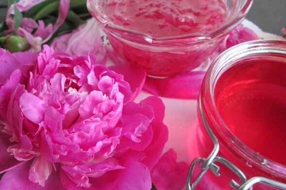 Цветочный бальзам это потому , что мы именно из цветов и будем делать наш бальзам . В первую очередь надо обьяснить для какой цели мы его будем готовить , в эпоху стресса и перегрузок моральных и физических чаще всего страдает наш организм или отдельные функции ,а именно появляется слабость падает зоркость зрения и т. д .Этот бальзам наполнит вас силой спокойствием ,снизит сахар ,укрепит иммунитет улучшит зрение .Вы станете моложавее и бодрее. Основа это 500 г сахара и 250г. воды, первый компонент бальзама это лепестки «пиона (4 бутона)», второй компонент это лепестки « бархатцев»(6 бутонов), третий компонент это корень имбиря ( примерно с большой палец) и последний компонент это курага (сушёный урюк) можно заменить 3-мя персиками и немаловажный ингредиент можно добавлять, если хотите хранить долго это 50 грамм коньяка . Приступим к приготовлению – очистим бутоны от лепестков и отложим лепестки отдельно, почистим от кожуры корень имбиря и натрем его на крупной терке,100 г
