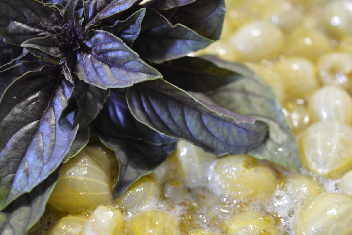 - Если крыжовник у вас, как у меня - зеленоплодный, то базилик лучше взять фиолетовый, тогда цвет желе получится более аппетитный.