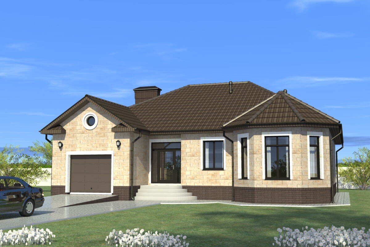 Просторный и стильный проект одноэтажного дома, для одной семьи: 168,41 м2!