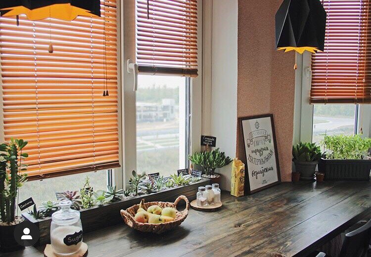Их вполне можно использовать в жилых пространствах)) Так как на кухне мы решили сделать обеденный стол-стойку расширив подоконник эркера, то вариант оформления окон шторками оказался неуместным. А голые окна - это всегда не очень уютно, уже не говоря о том, что иногда просто слепит солнце)