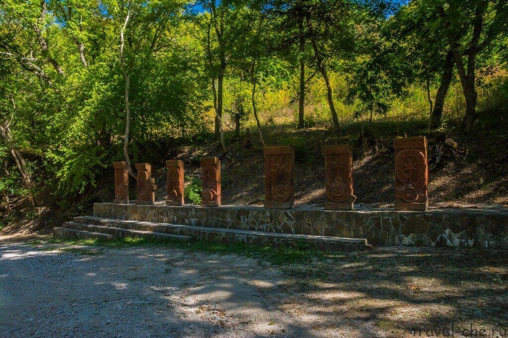 Как доехать до монастыря Сурб-Хач Расстояние до монастыря от Феодосии 30км, от Коктебеля 33км и 36км от Судака. На машине дорога займет у вас минут 30-40. Дорога асфальтирована до поворота на монастырь, дальше грунтовка. Мы ездили на седане, проехали отлично. Есть указатели, но и без них заблудиться сложно! Вам нужно ехать все время вверх. На половине подъема стоит кафе с крымско-татарской кухней. Меню простое: лагман, домашний сыр, шашлык. Цены приемлемые, за суп отдали 150р, за тарелку с сырной нарезкой - 100р. Если вы путешествуете без автомобиля, то из Фео, Судака и Коктебеля возят организованные экскурсии. Монастырский комплекс состоит из : Церковь Сурб-Ншан, что переводится как церковь Святого Знамения, построена в 1358 году. Церковь действующая, поэтому одеться нужно соответствующе. Внутри очень атмосферно, нет такой роскоши как в русских монастырях. Трапезная — расположена к западу от храма, их разделяет внутренний монастырский двор. Кельи (братский корпус) и внутренни