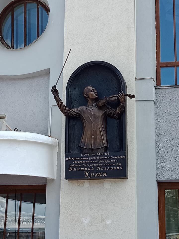 Мемориальная доска посвящена Дмитрию Когану – заслуженному артисту РФ, художественному руководителю Самарской филармонии с 2011 по 2013 годы. Автором стал член Московского союза художников, самарский скульптор Карен Саркисов