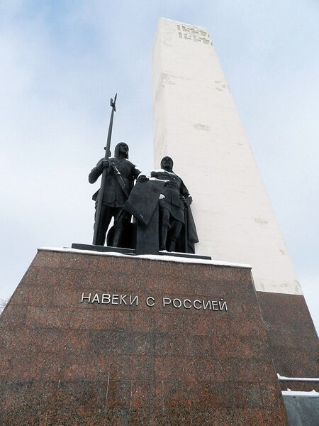 Монумент «Навеки с Рос-сией» открыт 28 декабря 1968 г. в честь 400-летнего союза Адыгеи и России. Авторы мо-нумента – советский скуль-птор, вице-президент Ака-демии художеств СССР М.Г. Манизер, скульптор О.М. Ма-низер, архитектор, трижды лауреат Ленинской премии Е.В. Рожин. Монумент является частью мемориального комплекса пло-щади Дружбы в Майкопе. На гранит-ном пьедестале плечом к плечу стоят два вои-на – русский и адыг. Их снаря-жение и воору-жение отобра-жают историю xVI в., время царствования на Руси Ивана Грозного.