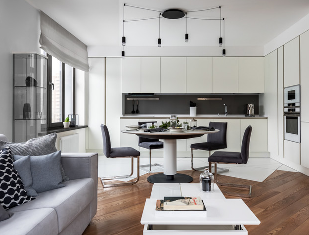 Продолжаем разговор о кухнях и перечислим модные тенденции этого и будущего года. За мнмлзм! То есть никакой показухи. Кухня не должна афишировать свою стоимость, на первом месте сейчас качество и функционал, скрытность и эргономика. Держите курс на лаконичность - не ошибетесь. "Никакого глянца, матовость. Пышные вензеля времен эпохи Возрождения уже не заказывают. Все нейтральное, спокойное. Больше внимания уделяют белому цвету и натуральном шпону. Визуальная простота - вот что главное", - говорит наш дизайнер отдела кухонь Жанна Потапова. Модные фасады. И что их таковыми делает? Наконец мы дожили до эпохи экспериментов. Цвета предпочитают охристые, брусничные, серые, темно-зеленые. А еще люди перестали бояться черного цвета. Черный цвет в интерьере сейчас достаточно модный. Из материалов юзают святой бетон, стекло, керамогранит и металл. Острова. Острова. И еще раз острова. Уже отказываются от барных стоек, просят только острова. Даже если не нужны и некуда - все равно просят. А