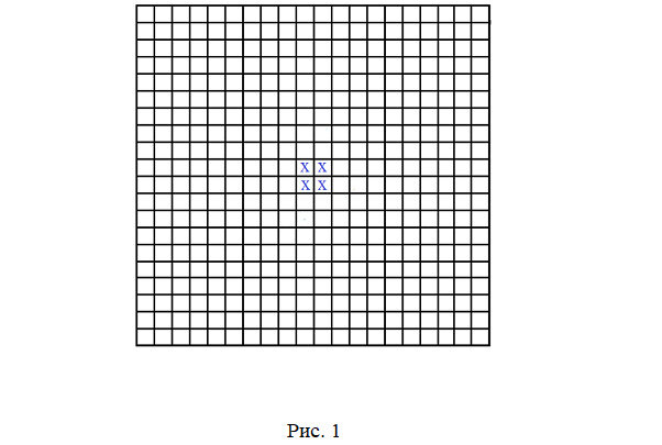 На “бесконечном” листе бумаги в клетку задается произвольная начальная конфигурация из конечного числа крестиков, которую мы назовем затравкой. Пример затравки представлен на рис. 1.