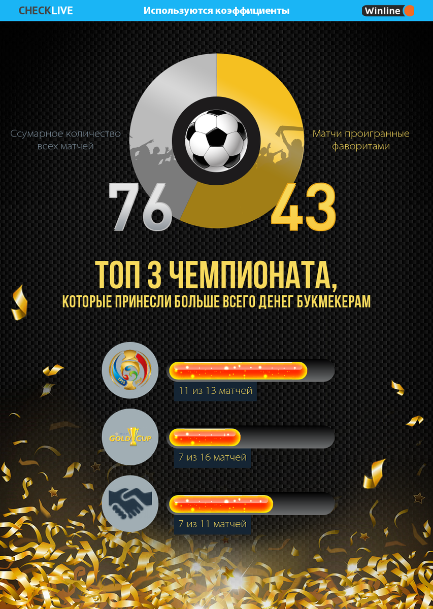 В итоге из 76 сыгранных матчей в чемпионатах, в 43 фавориты не победили, то есть 57%