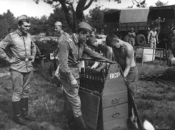 Служба солдата срочника в ГСВГ, в основной массе проходила так: закрытый военный гарнизон, размещённый в бывших немецких военных городках, обнесённый высоким забором с КПП. Увольнений нет в принципе. Распорядок дня: подъём, зарядка, заправка, умывка, утренний треннинг (строевая, по средам ЗОМП и тп.), завтрак, выход на местные полигоны на учёбу или на работы (разгрузка угля, другие местные заморочки), обед, подготовка к нарядам или работа в парке и тп., 18-00 развод, заступления в наряды, караулы, в 19-00 ужин, свободное время (подшивка и тому подобное), вечерняя прогулка, моем ноги и в 22-00 спать. Ну, суббота естественно ПХД. А уж воскресение, это конечно "спортивные праздники": кроссы под духовой оркестр и полевую кухню с чаем. У нас в 353 гв.ТП они проводились за территорией части, от забора бежали по городской аллее до немецкого кладбища в центре города. Получалось что-то вроде быстрого увольнения - успевали посмотреть на немок. Ну была отдушина от зимних квартир - это полигоны с
