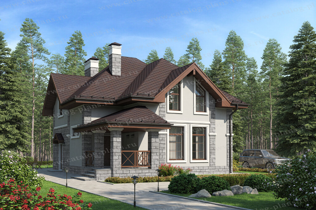 Этот проект уютного дома из газобетона с террасой и мансардной крышей точно придется вам по душе. Симпатичная наружная отделка штукатуркой и декоративным камнем, а также мансардная крыша, покрытая металлочерепицей, подчеркивают европейский архитектурный стиль, в котором выполнен дом. Так же обратите внимание на просторную террасу с декоративными элементами из дерева. В таком доме с удовольствием будет жить семья из пяти человек. В качестве фундамента дома была выбрана монолитная железобетонная плита, перекрытия – монолитные. На общей площади в 158,14 квадратных метров, архитекторам удалось уместить все необходимые для комфортной жизни помещения. В этом доме нет ничего лишнего, вся планировка очень хорошо продумана для удобства жильцов. Размеры дома: 14х10,15 квадратных метров. Такой дом идеально впишется в городской пейзаж. Но и на фоне природного ландшафта он тоже будет отлично смотреться. Попасть в дом можно пройдя через просторную террасу, или со стороны котельной. Большую часть пер