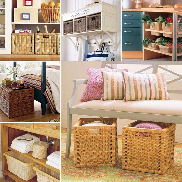 Такие корзины используются практически во всех помещениях, они удобны тем, что подходят для малогабаритных квартир, где сложно поставить большой шкаф, но при этом являются частью интерьера, его изюминкой- поэтому такие корзины называют интерьерными.