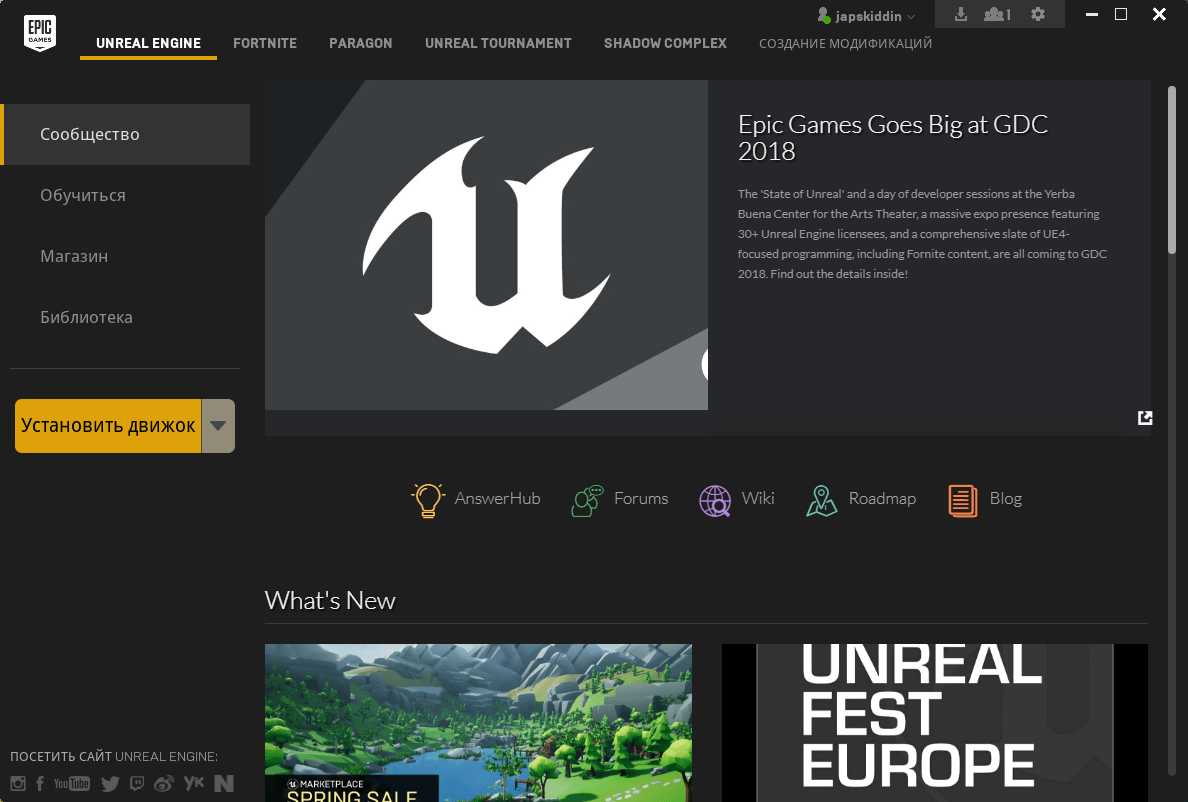 Открыв Epic Games Launcher, перейдите на вкладку Unreal Engine.