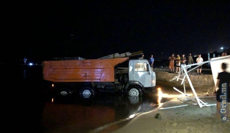 ЧП случилось ночью на пляже «Отрада». Как сообщают очевидцы, автомобиль КАМАЗ с грузом скатился со склона на пирс и с него выехал в море. К счастью, люди не пострадали. Подробности на сайте Телерадиокомпании