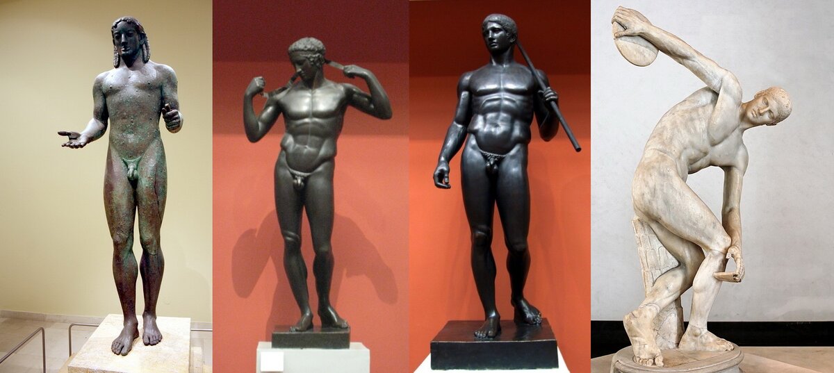 Ваять и ставить на самом видном месте голых мужиков древние греки начали давно. А вот с раздетыми гречанками было сложнее. Неприлично это было. Вроде бы и красиво, и глаз радует, а моральные принципы как-то не позволяли. Но никакого противоречия тут нет. Ведь кого могла изображать мужская статуя? Атлета, воина, героя – им совершенно не стыдно сверкать мускулистой наготой. Вот, мол, какой! В здоровом теле – здоровый дух. Для греков это было действительно важно. На спорте и олимпиадах они вообще были помешаны – даже летоисчисление по ним вели.
