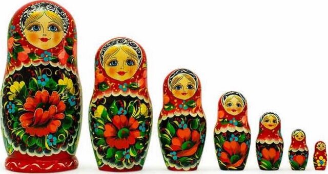 Матрёшка - наиболее известный и наиболее популярный из всех российских сувениров. Традиционным дизайном матрёшки поныне является образ молодой русской женщины, одетой в национальный костюм, с косынкой на голове. В классической матрешке все куклы в наборе выглядят практически одинаково, а их количество варьируется от 5 до 30.