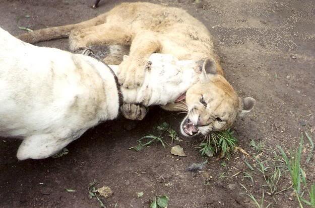 Представители семейства кошачьих обладают острыми когтями, которые умело пускают в ход. У собак в арсенале только пасть. Кроме того, кошки быстрее и проворнее. Пума — хищник семейства кошачьих. Водится в Северной и Южной Америке. Пума — четвёртый по величине представитель семейства кошачьих в мире, и второй — в Америке; крупнее неё только тигр, лев и ягуар. Эта кошка достигает в длину 100—180 см, при длине хвоста 60—75 см, высоте в холке 60—90 см и весе до 105 кг (самцы). Википедия. Данные хищники в одиночку убивают оленей, на которых в основном и охотятся. Крепкие зубы позволяют им перекусывать кости, а острые когти — разрывать шкуры и плоть. Известно немало случаев нападения пумы на человека, закончившихся летальным исходом. Пумы также с легкостью убивают любых собак, кроме тех, о которых речь пойдет далее. Трудно себе представить, но в начале XX века в Аргентине появилась собака, предназначенная специально для охоты на пум — в 1925 году Антонио Норес Мартинес путем скрещивания разли