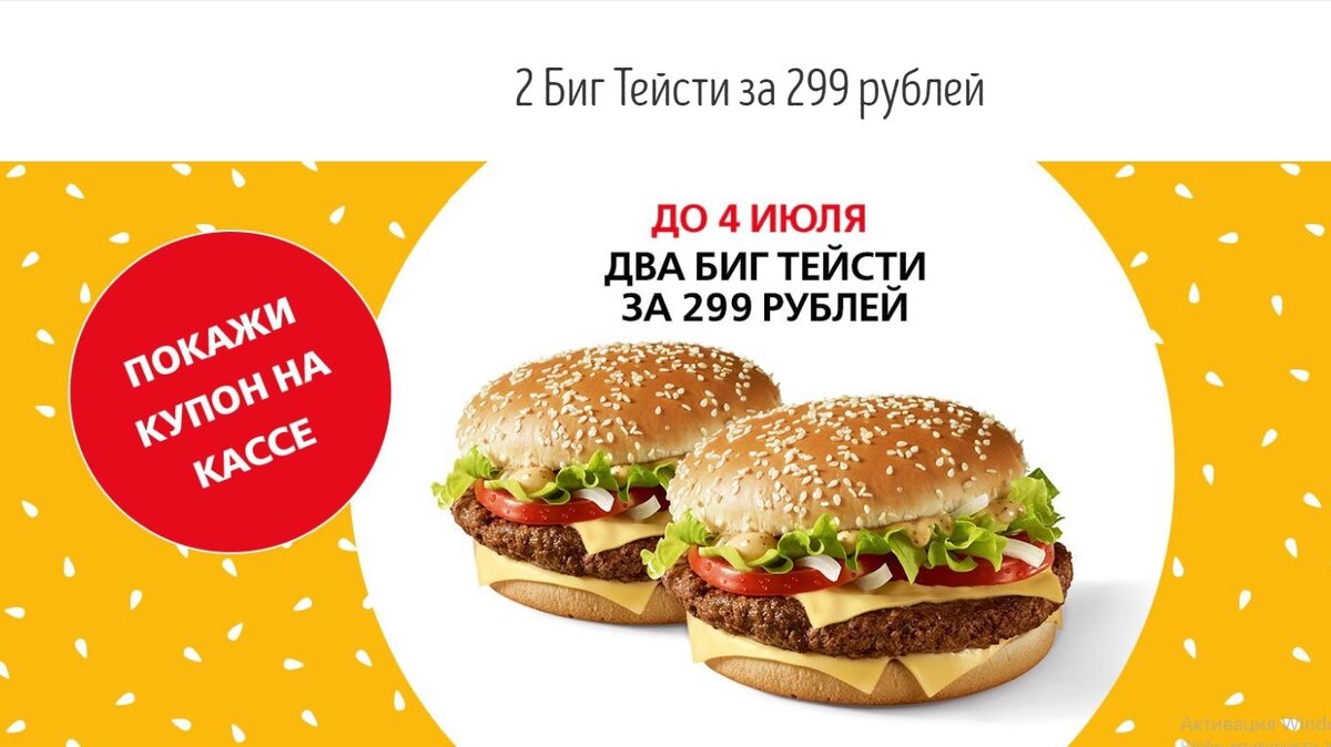ДВА БИГ ТЕЙСТИ ЗА 299 РУБЛЕЙ И ДВА РОЯЛА ЗА 199 РУБЛЕЙ McDonald's