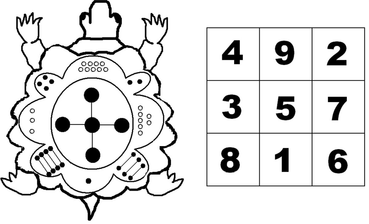 Доброго здравия, Познающие Истину! Что из себя представляют магические квадраты так никто и не разобрался до конца, во всяком случае такой информации не сыскать на просторах интернета. Помимо различных трактований бытует мнение, что это некие "формулы" из мира алхимии. В этой статье попробую Вам это косвенно доказать и заодно предоставить способы их построения на трёх примерах. Для начала посмотрим определение магическим квадратам из Википедии: "магический, или волшебный квадрат - квадратная таблица, заполненная различными числами таким образом, что сумма чисел в каждой строке, столбце и на диагоналях одинакова". 1. "Квадрат Ло-Шу" - как самый простой и яркий тому пример: Данный квадрат 3х3 является является одним из самых старейших инструментов фен-шуй, который помогает составить индивидуальное предсказание и карту энергетики помещений, в зависимости от сторон света. Другими словами, на этом квадрате построилась древняя китайская наука о взаимодействии окружающего мира и чело