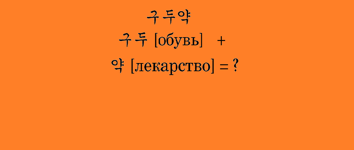 Почему мне нравится корейский язык? Он красиво звучит. А еще значения некоторых слов можно угадать, если знаешь перевод составных частей. Попробуйте и вы :) Слово 구두약 [кудуяк] состоит из двух частей: А все вместе переводится как «крем для обуви». Ну как, правильно угадали? Делитесь в комментариях своими вариантами! #корея, привет — интересное Если вам понравилась головоломка, ставьте лайк и подписывайтесь на канал «Корея, привет!»
