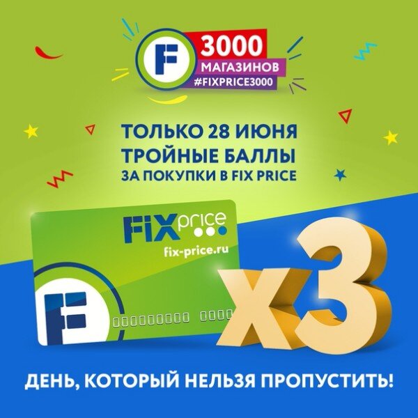 Дополнительные 3х баллы на бонусную карту от магазина Фикс прайс