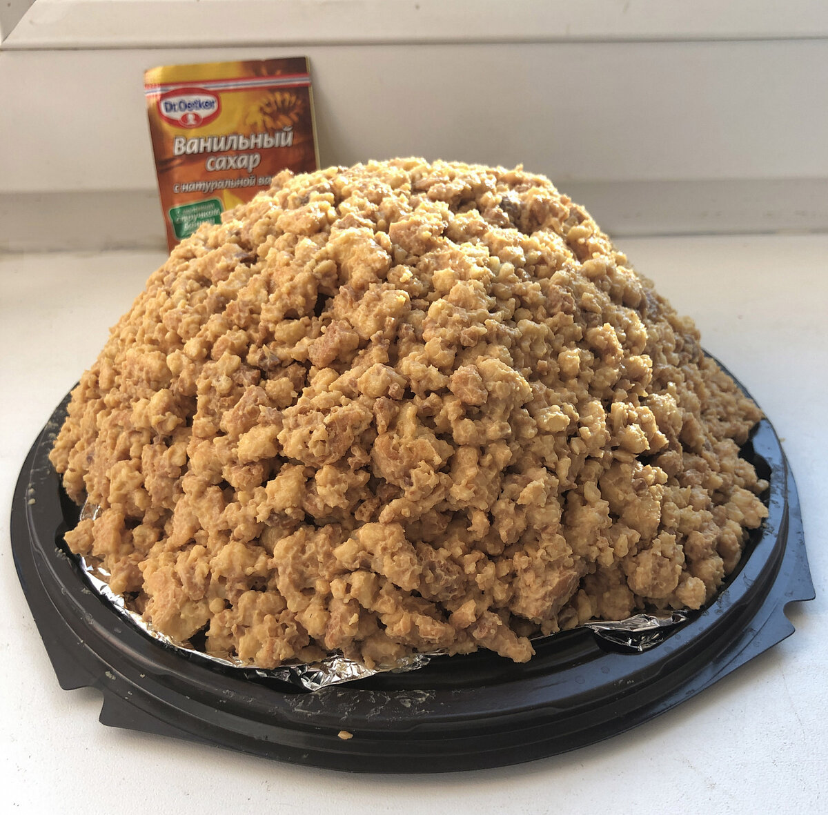 Муравейник, совсем не сложно, и очень вкусно. О рецепте Сложность: Легко Количество порций: 10 Время приготовления: 2 часа Ингредиенты Ванильный сахар с натуральной ванилью Dr.Oetker - 0.5 ч. л. Сгущёное молоко - 1 банка Сливочное масло - 200200 г Яйцо - 2 шт. Мука - 3 стакан Молоко - 100 г Сахар - 2 ст. л. Сода - 0.5 ч. л. Соль - 0.5 ч. л. Способ приготовления 1. Готовим песочное тесто. Рецепт очень простой, так что вам не придётся заморачиваться с готовкой, но продукты берите самые хорошие. Берём в одной миске смешиваем растопленное масло, сахар, соль, соду, молоко, яйца. Массу до однородности смешать венчиком, взбивать тут совершенно не нужно. Просеиваем муку, берём качественную, высшего сорта. Смешиваем тесто до однородности, лучше всего это делать крепкими мужскими руками, потому что тесто будет довольно крутым. 2. Скатываем небольшую колбаску, и внимание! Убираем в морозильник, поверьте, так нужно. Когда тесто чуть застынет, морозить полностью не обязательно, достаём и натираем