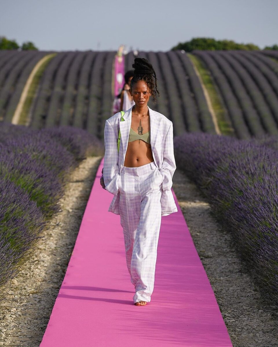 Прозрачные воды, большие возвышенности и настоящие дорожки испытаний – дизайнеры всегда отличались большой оригинальностью в создании подиумов для своих показов, но с такой страстью к искусству, как Симон Порт Жакмю, к делу никто не подходил. Этот талантливый модельер уже показывал свое творчество в публичном бассейне, со скакуном на подиуме, а сейчас – покорил и лавандовые поля 10 лет исполнилось бренду Жакмю, и отметить круглую дату его создатель, Симон Порт Жакмю, приехал на лавандовые поля в Валенсоль. Именно там состоялся показ новой коллекции Весна-Лето 2020. Место на юге Франции Жакмю выбрал неспроста: «Все, что значит для меня все – отсюда. Пожалуйста, не зовите меня Парижанином! Я с Юга Франции». Огромные шляпы вкупе с крошечными сумочками, шорты-бермуды и элегантные брючные костюмы, а на десерт – изысканные наряды, украшенные драгоценными камнями Swarowski: Жакмю совершил фурор и притянул все взгляды на ярко-розовую дорожку посреди лавандового поля. Сейчас