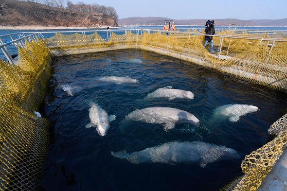 Напомним, 11 косаток и 90 белух оказались в вольерах бухты Средняя еще в ноябре прошлого года. Млекопитающие были помещены туда незаконно, предположительно их отловили с целью продажи в океанариумы.