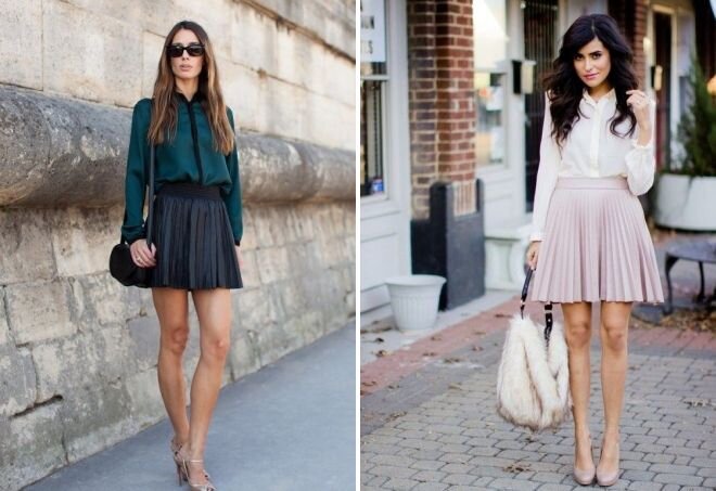 Плиссированные юбки, изрядно подзабытые в последние годы, снова в моде. С легкой руки модного дома Гуччи на подиумах появились самые разные варианты юбок – короткие, средний длины, в пол. Модели шьют из необычных материалов, например, из тончайшей кожи или легкого фатина. Короткая Короткая плиссированная юбка – вариант для молодых и дерзких девушек со стройными ножками. На базе такой юбки можно создать очаровательные и немного игривые образы. Весной или осенью такую юбку можно надеть в паре с замшевыми ботфортами на небольшом устойчивом каблуке и лаконичным джемпером. Очень важно подчеркнуть линию талии, чтобы не нарушать пропорции фигуры. Поэтому верхнюю часть ансамбля нужно заправить за пояс юбки или использовать широкий ремень. Летом такие юбки следует комбинировать с простыми топами и майками. Обувь к такому ансамблю должна быть комфортной, это могут быть и кроссовки, и балетки и босоножки на танкетке. А вот обувь на шпильках с короткой юбкой надевать не стоит, образ получится вул