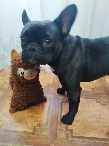 Всем большой привет! Все наверное знают о доброте фрацузских бульдогов и привязанности к своему хозяину . Мы покупали собаку для дочери,но так вышло ,что заниматься приходиться, нашим малышом,всем членам семьи. Арчи же в свою очередь,проявляет любовь ко всем нам,и похоже, кто именно для него будет хозяином ,так и не определился. В какой то момент,мы начали замечать,что малыш очень ревнив.Если например муж на меня положит руку,реакция у бульки мгновенная,начинает прыгать вокруг и лаять. Ну а уж об обидах и речи быть не может,если кто то повысит голос ,на кого нибудь из членов семьи,сразу пытается заступиться ,в этот момент мы в шутку называем его - миротворец))) Как то муж, из командировки ,привез дочке не большой подарок,собственно это была её просьба - маленькая,мягкая Альпака. .Дочь была на седьмом небе от счастья,а вот кое кому ,игрушка пришлась далеко не по вкусу...Увидев что дочка обнимает нового друга,пусть даже игрушечного,Арчи насторожился,подошёл поближе,понюхал и разлаялся та