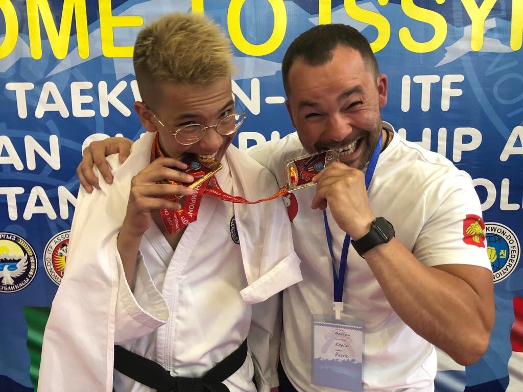 В Кыргызстане, в городе Чолпон-Ата на Иссык-Куле, продолжается Чемпионат и Кубок Азии по тхэквондо ИТФ. Сегодня в борьбу за медали вступил воспитанник Школы боевых искусств Анатолия Чиканчи и СШ «Фаворит» Владимир Юхов. Как рассказал наставник спортсмена Андрей Кетов, Владимир выступал в категории 12-13 лет, весовая до 50 килограмм. В тылях (комплексах) сыктывкарец уверенно прошел в финал, где довольно спорным решением уступил узбеку и стал серебряным призером. Зато в массоги (спарринги) Владимир Юхов безоговорочно выиграл чемпионат континента. Символично, что золотую медаль он получил из рук судьи соревнований, мастера спорта международного класса Анатолия Чиканчи. – К нашему чемпиону у нас никаких претензий нет. Для нас он – победитель в обеих дисциплинах. В любом случае, две медали – это прекрасный результат, на который мы с ним и рассчитывали. Было видно еще на тренировках, что у парня все должно получиться, – подчеркнул А. Кетов. Таким образом на счету подопечных Школы боевых и