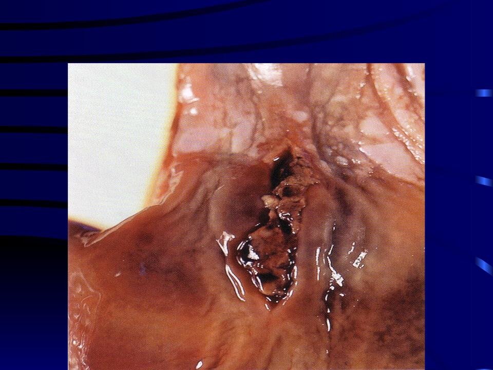 стадия - разрыв с вовлечением циркулярного мышечного слоя. Зона разрыва не спазмируется, не смыкается, интенсивное кровотечение;