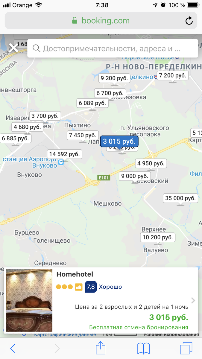 У нас был вылет на отдых из Москвы из аэропорта Внуково. И решили остановиться в непосредственной близости от него. Если открыть букинг, то примерно вот такой расклад цен на отели в непосредственной близости от Внуково Как видите, мы решили выбрать один из самых недорогих вариантов, но со своей ванной комнатой (правда на нашу дату этот номер стоил 3350р с завтраком без отмены бронирования). Отель находится на территории СНТ и дорога около отеля уже нас слегка смутила (учитывая, что второй день шёл ливень). Так как хотелось поздно вечером прийти и лечь спать, а рано утром выехать на долгожданный отдых и поэтому дизайн помещения был абсолютно не принципиален! И проглядев перед бронированием фото номера, мы ещё пошутили, что он выглядит «как квартира питерских поэтов». Но когда зашли в номер, дружно протянули: «мдаааа», «как у бабушки в деревне». Наверное, ещё сказался контраст с отелем, где мы за те же деньги провели предыдущую ночь. Но в номере мы сидеть не собирались и оставив м