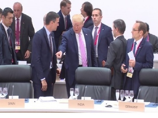 В испанских СМИ распространяется видеозапись инцидента, когда во время очередного заседания и.о. премьера Испании Педро Санчес попытался заговорить с проходящим мимо президентом США.