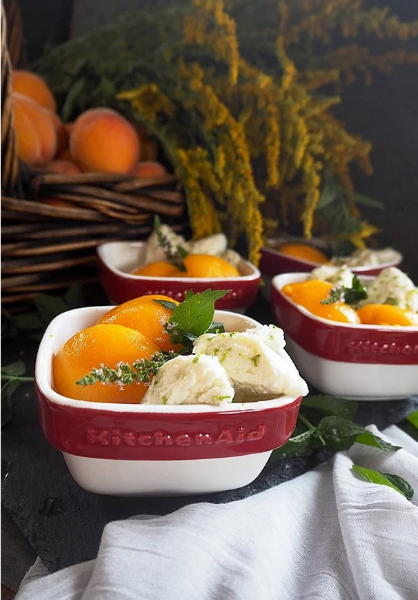 У меня есть совет, чтобы у вас был легкий фруктовый десерт, который великолепен и не сложен в приготовлении. ингредиенты: 8 очищенных, разделенных пополам и без косточек персиков 2 столовые ложки сахара кружка просекки веточка розмарина Рикот Крем: 400 г рикотти 2 столовые ложки сахарной пудры лаймовый сок и кора листья мяты для украшения Вот как: Смешайте все ингредиенты для крема и дайте ему остыть. Доведите просекко с сахаром и розмарином до кипения, уменьшите огонь, добавьте очищенные и разрезанные пополам персики и дайте маслобойке в течение 3-4 минут. За это время мы поливаем вино. Затем удалите персики и дайте остыть. Оставьте жидкость, оставшуюся в кастрюле, на некоторое время кипятить, немного загустеть. Рикотный крем наливают в миски, из него можно приготовить ньокки, добавить холодные персики, влить глинтвейн и украсить мятой.