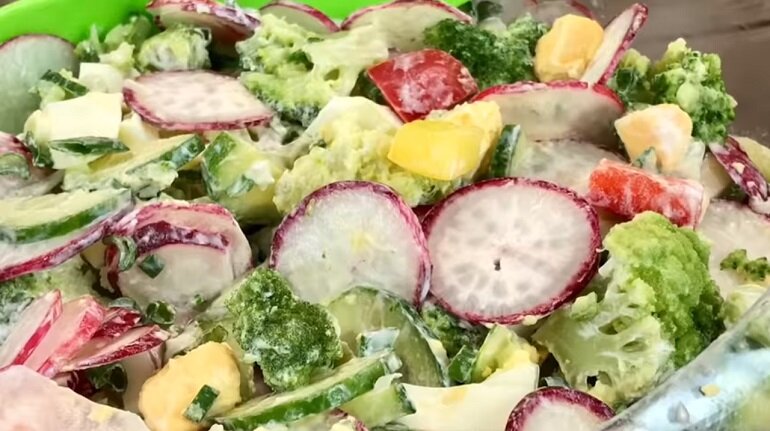 Этот рецепт очень выручил меня после Пасхи, когда осталось много яиц. Но разгрузочный витаминный салат так всем понравился, что блюдо теперь на нашем столе чуть ли не каждый день. Стоит жара, скоро откроется купальный сезон: решили, что надо убрать лишние килограммы в сжатые сроки При этом чувство голода нам не знакомо: салатик сытный, аппетитный, ароматный – то, что надо, когда на улице 30 градусов выше нуля. А готовить его проще простого: самое сложное, это яйца отварить. Потом останется все порезать, заправить – и наслаждаться свежим вкусом. Необходимые ингредиенты: Как приготовить разгрузочный витаминный салат с редисом Разгрузочный витаминный салат с редисом порадует вас своим ароматом и вкусом, надолго избавит от чувства голода. Если мужчины не хотят соблюдать такую диету, можете дополнить их ужин куском мяса: обязательно скажут спасибо.