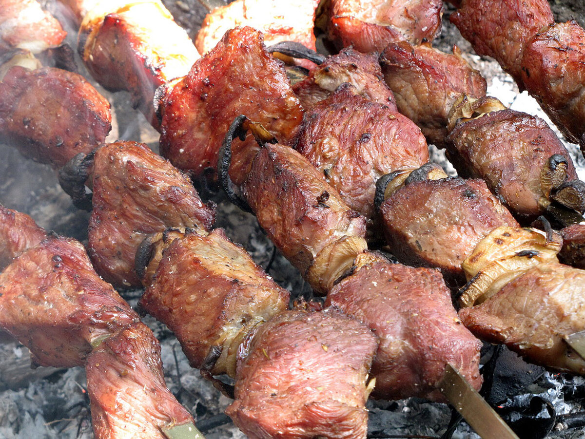 Готовность шашлыка можно легко проверить ножом - при разрезании мясо должно быть без розового оттенка.