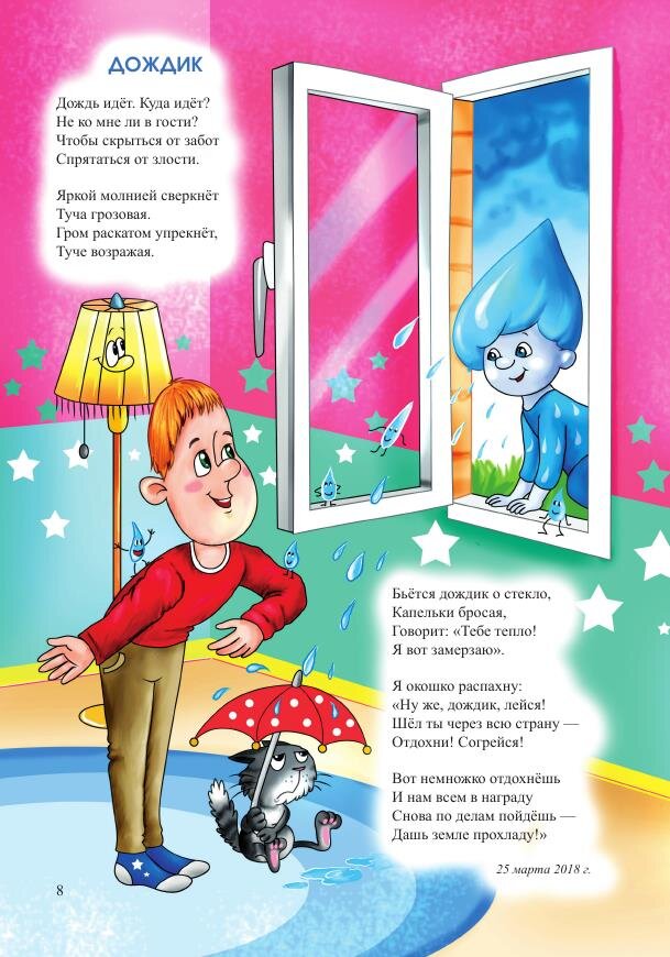 Я окошко распахну: «Ну же, дождик, лейся! Шёл ты через всю страну – Отдохни! Согрейся!