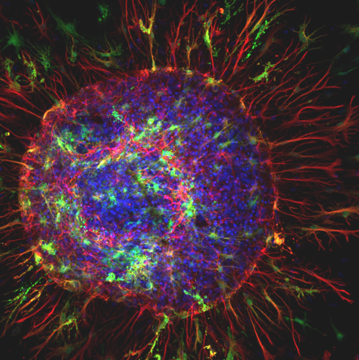 Боковой амиотрофический склероз иногда бывает наследственным. В этом случае он связан с мутацией G93A SOD1 (гена супероксиддисмутазы). Судя по всему, здесь в заболевании тоже не обходится без астроцитов. Перед вами — снимок, участвующий в традиционном конкурсе NeuroArt за июнь. На нем мы видим культуру мутантных астроцитов спинного мозга мыши (окрашены по GFAP — глиальному фибриллярным кислому белку — красным), экспрессирующие токсичные агрегаты супероксиддисмутазы, окрашенные зеленым. Снимок: Karthik Krishnamurthy Читайте материалы нашего сайта в Facebook, ВКонтакте, Яндекс-Дзен, Одноклассниках и канале в Telegram, а также следите за новыми картинками дня в Instagram.