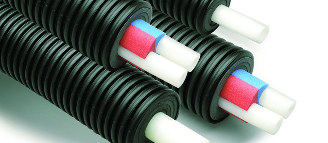 Современные технологии предлагают инновационные решения для прокладки централизованного и автономного теплоснабжения, а также теплосетей иного назначения и сетей охлаждения теплоизолированные трубы Uponor Ecoflex. ТЕХНОЛОГИЯ ПРОИЗВОДСТВА Трубы Упонор в изоляции обладают легким весом и повышенной прочностью. Их производят из высокопрочного полиэтилена PE-Xa, молекулярная структура которого в процессе производства прошивается поперечными соединениями, в результате чего образуется трехмерная сетка, обеспечивающая уникальные свойства трубы: В ходе производства труба сшивается и покрывается вспененным полиэтиленом повышенной прочности, обеспечивающим ее теплоизоляцию. Особенностью материала PE-Xa, из которого сделана такая труба, является его память формы. После сгибаний и расширений возвращается в свою первоначальную форму. Такая труба способна выдерживать высокое давление и воздействие температуры разных значений. Изделие представлено широким размерным рядом: ее диаметр может составлять