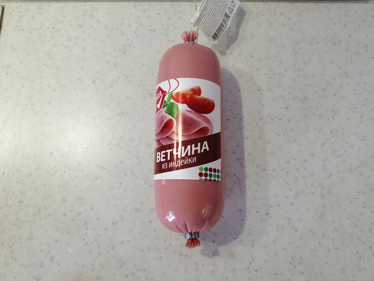 Рубрика самые дешевые колбасные изделия продолжается. Прошлый обзор на колбасу полукопченую Красная цена за 35 рублей вызвал бурное обсуждение в комментариях. Поэтому перед обзором хочу донести несколько мыслей: В этом обзоре снова марка Красная цена. И это самая дешевая ветчина, которую я когда либо видел. Масса: 400 гр. Производитель: ЗАО "Лыткаркинский МПЗ", Московская обл., г. Лыткаркино. Данный производитель мне знаком. Каша гречневая и мясо цыпленка из Fix Price изготовлены там же. Состав Первый раз сталкиваюсь с таким, что вся информация о продукте на склееной пополам бумажке, которая приклеена к веревочке. Ингредиенты: филе индейки, вода, белковый стабилизатор (шкура свиная, вода), мясо птицы механической обвалки, крахмал картофельный, нитритная соль (соль, пищевой фиксатор окраски - нитрат натрия), соевый белок, декстроза, загустители (Е407, Е415), регуляторы кислотности ((Е451i, Е262), стабилизаторы (Е450i, Е452i), усилители вкуса и аромата (E621), молотые пряности: перец
