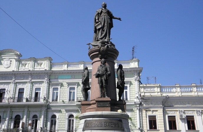 Спустя столетие, в 1900 году горожане открыли памятник Екатерине II на площади, названной в ее честь. Императрица изображена в полный рост, в руке она держит свиток со словами указа: «Повелеваем быть городу и порту». Фигуры ее сподвижников в основании монумента: Потемкин, де Рибас, Зубов, де Волан.