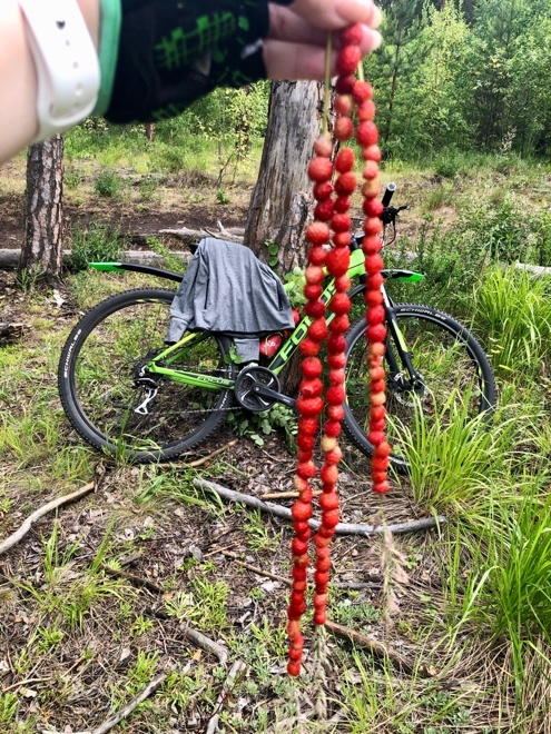 1. Поехала на велике утром в бор. Среди недели не смогла выбраться. И вот чуть немного засидишься дома, потом уже вытащить себя труднее. С самого утра искала причины не ехать, но не поддалась на провокации внутреннего голоса. И правильно сделала! После велопрогулки настроение всегда на подъеме.В бору грязновато после недавних дождей, но когда меня это пугало? разве что велик теперь мыть придется. Докатила до карьера, чтобы сделать там зарядку. Люблю это место и вид с него даже в такой пасмурный день, как сегодня. 2. Велик у камушка припарковала и айда упражнения делать! 3. Сделала свой комплекс и с чувством выполненного долга поехала на свою секретную полянку, узнать как там дела с земляникой обстоят. Не доехав до неё, свернула ещё в одно место, где видела до этого ягоды. Но тут всё до меня собрали.Не надеялась