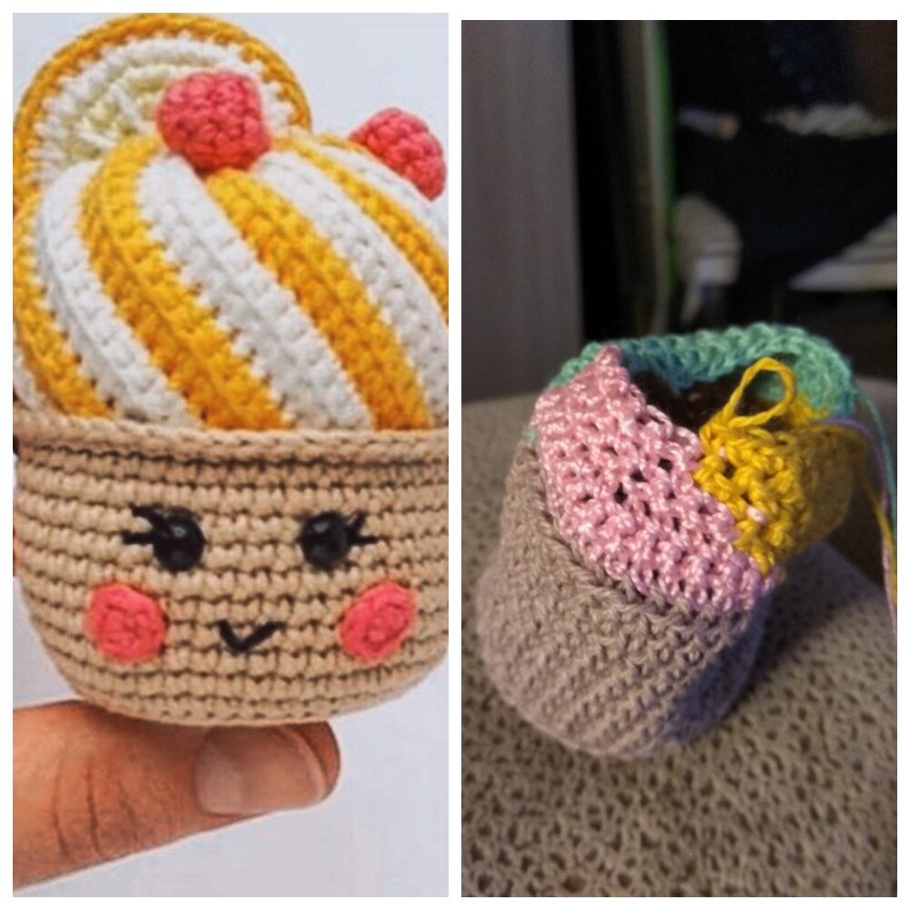 Хотела связать такой кексик с разноцветным "кремом", получилось вот что...Может свяжешь?