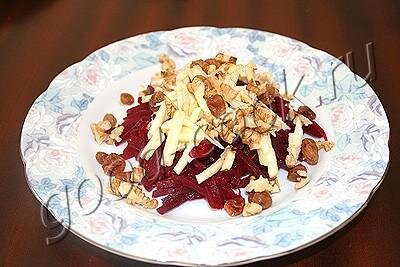 Кроме того он стимулирует перистальтику кишечника. СОСТАВ На 3 порции: 1 варёная свёкла d=10см (~300г), горсть изюма (~40г), 1 яблоко, горсть грецких орехов или арахиса (~20г), 2~3 ст ложки сметаны посмотреть калорийность» Изюм вымыть и залить кипятком.