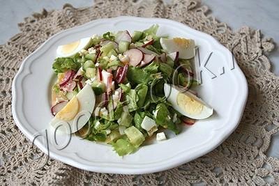 Утоляет голод, но не вызывает чувство тяжести в желудке. СОСТАВ На 2 порции 70г редиса, 1 небольшой огурец (70г), 40г садового салата или пекинской капусты, 2 варёных яйца, 1 варёный белок ЗАПРАВКА 1 варёный желток, 2,5 ст ложки растительного масла (~40г), 2 ч ложки лимонного сока, 0,5 ч ложки мёда, 1/5 ч ложки соли посмотреть калорийность» Заправка
