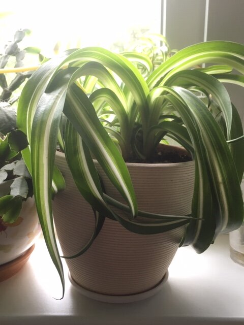 Хлорофитум (Chlorophytum) кудрявый или кучерявый многолетнее декоративно-лиственное травянистое растение. Разные источники относят это растение и к семейству Лилейных, и Спаржевых, и Агавовых. Хлорофитум имеет несколько названий: зеленое растение, зеленая лилия, летучий голландец, цветок-паук, венчик живородящий, веселая семейка и брызги шампанского. Растение очищает и увлажняет воздух в помещении, а также вносит покой и гармонию в жизнь людей. Листья двухцветные – зеленые с белой продольной полосой по середине, длиной до 60 см. Иногда можно наблюдать и его цветение, цветки хлорофитума мелкие и невзрачные, белые с длинными желтыми тычинками. Корневая система хлорофитума – клубневидная, где происходит запас влаги. Поэтому он может около месяца обходится без полива. Растение со временем формирует красивый габитус за счет равномерного разрастания в ширину и высоту. Продолжительность жизни около 10 лет. Хлорофитум растение светолюбивое, но ему вполне хватает и рассеянного солнеч