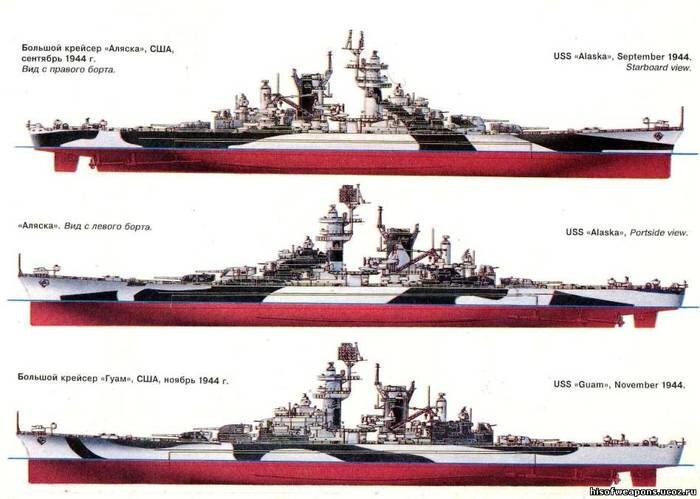 «Аляска» USS Alaska (CB-1) заложен 17 ноября1941 года, спущен на воду 15 августа 1943 года, вошёл в строй 17 июня 1944 года. Исключен 1.06.1960.